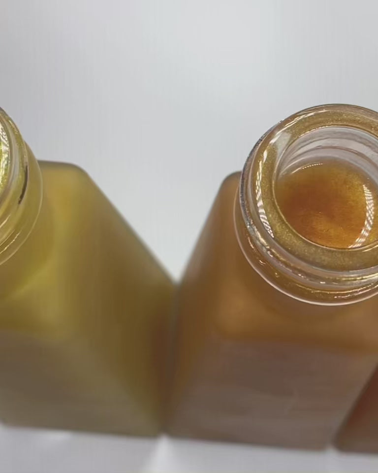 Shimmer and soften your skin with a sensual glow, lightly scented with essential oils and natural fragrances. This body oil will revitalize dull and dry skin while leaving your skin feeling rich and soft like silk. Layer the Body Glazed oil on top of the Creme De La Cream Body Butter for a glow, even the sun cannot outshine, and long-lasting, moisturized, baby-soft skin.